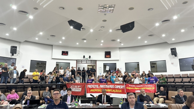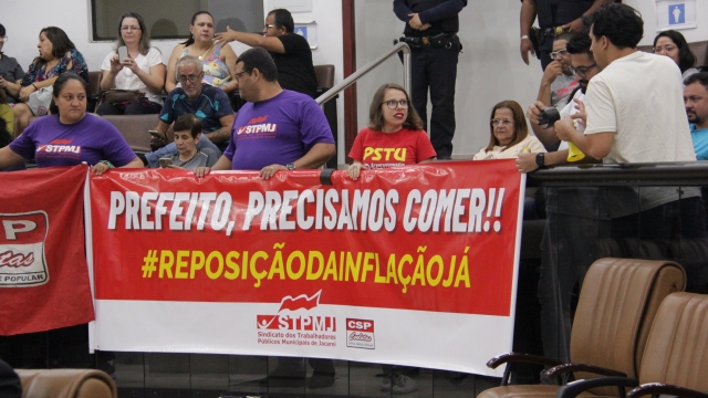 Durante a sessão uma manifestação de cerca de 30 servidores municipais, que contou com a presença de representantes do Sindicato dos Trabalhadores Públicos Municipais de Jacareí (STPMJ) e do Sindicato dos Trabalhadores do Serviço Autônomo de Água e Esgoto de Jacareí (SindSAAE), compareceram às Galerias da Câmara para protestar contra o percentual de reajuste apresentado pelo prefeito.