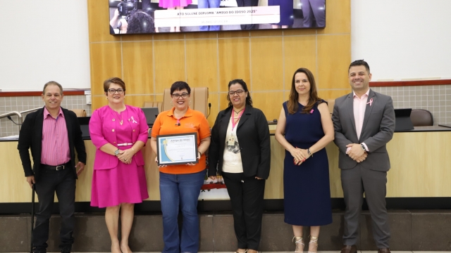 Idoso – Antes do início da sessão, o Cerimonial da Câmara realizou o Ato Solene de outorga do “Diploma Amigo do Idoso”, nos termos do Decreto Legislativo nº 412, de autoria da ex-vereadora Dra. Márcia Santos.