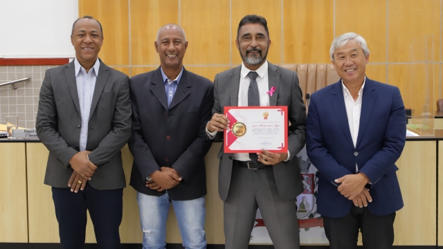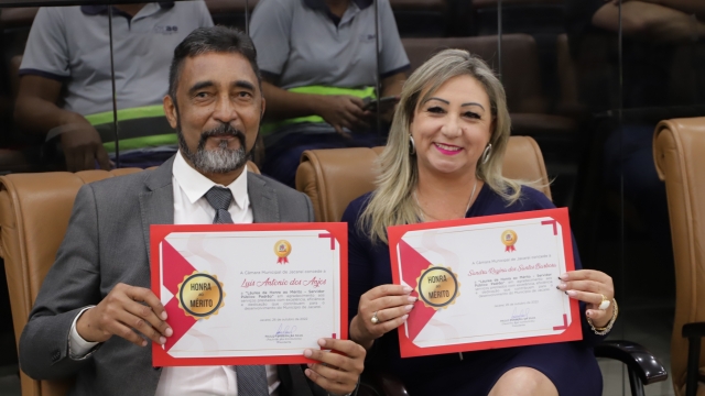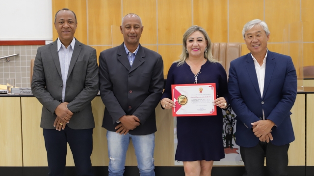 Solenidade – O Cerimonial da Câmara realizou Ato Solene de outorga da “Láurea de Honra ao Mérito – Servidor Público Padrão”, nos termos do Decreto Legislativo nº 366/2015, de autoria do vereador Edgard Sasaki (PSDB). Foram homenageados os servidores Luís Antônio dos Anjos e Sandra Regina dos Santos Barbosa.