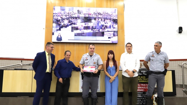 Solenidades – Antes da Ordem do Dia o Cerimonial da Câmara realizou Ato Solene conjunto para entrega do Diploma “Policial Destaque do Ano” e da “Láurea de Mérito Profissional aos Guardas Civis e aos Agentes da Defesa Civil de Jacareí”, de acordo com os Decretos Legislativos números 302/2010 e 318/2011, respectivamente, e outorga do Título de Cidadão Jacareiense (in memoriam) ao Dr. Talis Prado Pinto, conforme o Decreto Legislativo nº 337/2013.
