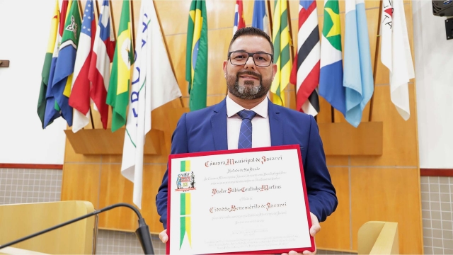 A Câmara Municipal realiza na próxima segunda-feira (18), às 19h, sessão solene para concessão de outorga de título de Cidadão Benemérito de Jacareí ao pastor Fábio Coutinho Martins.