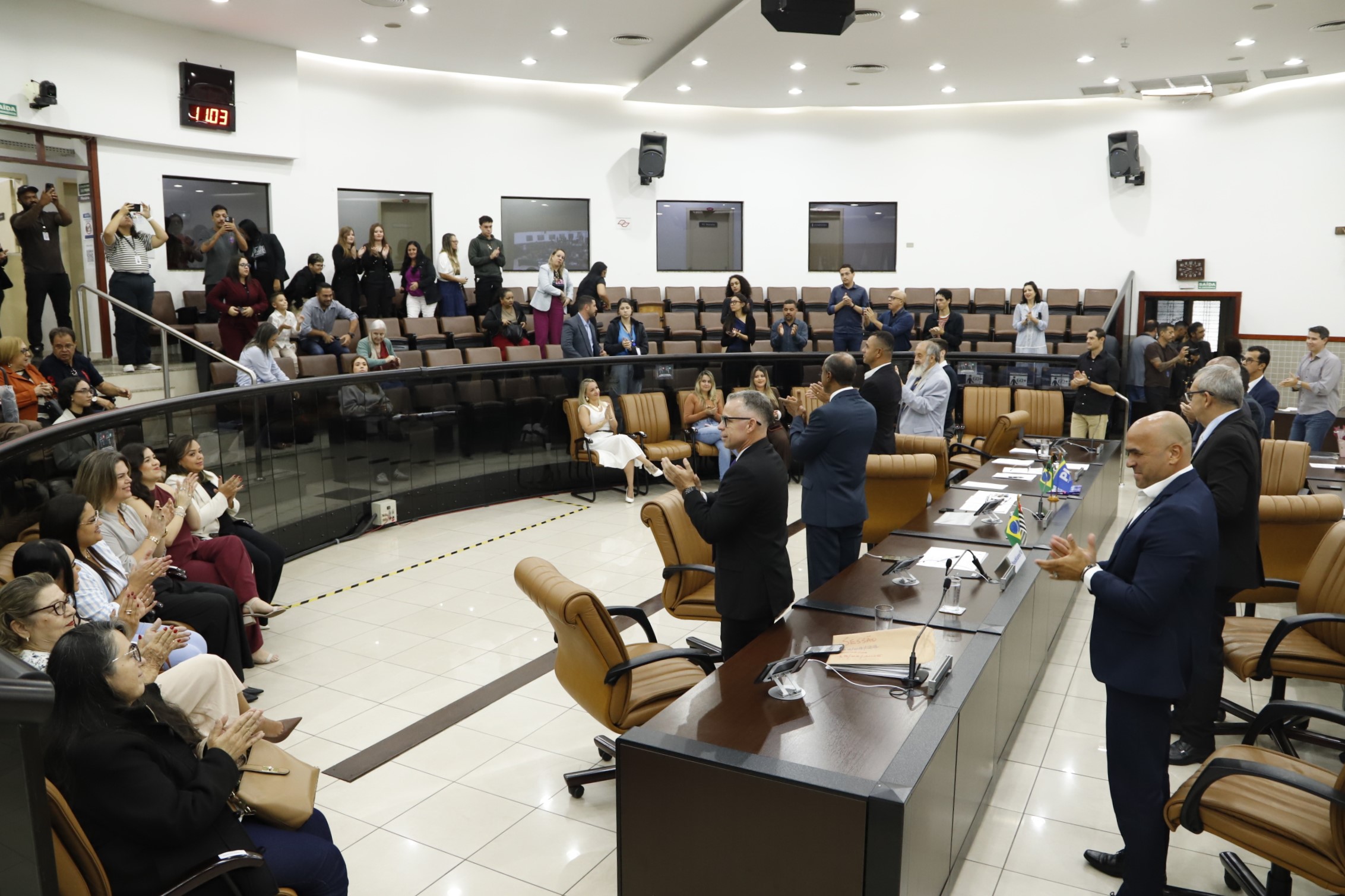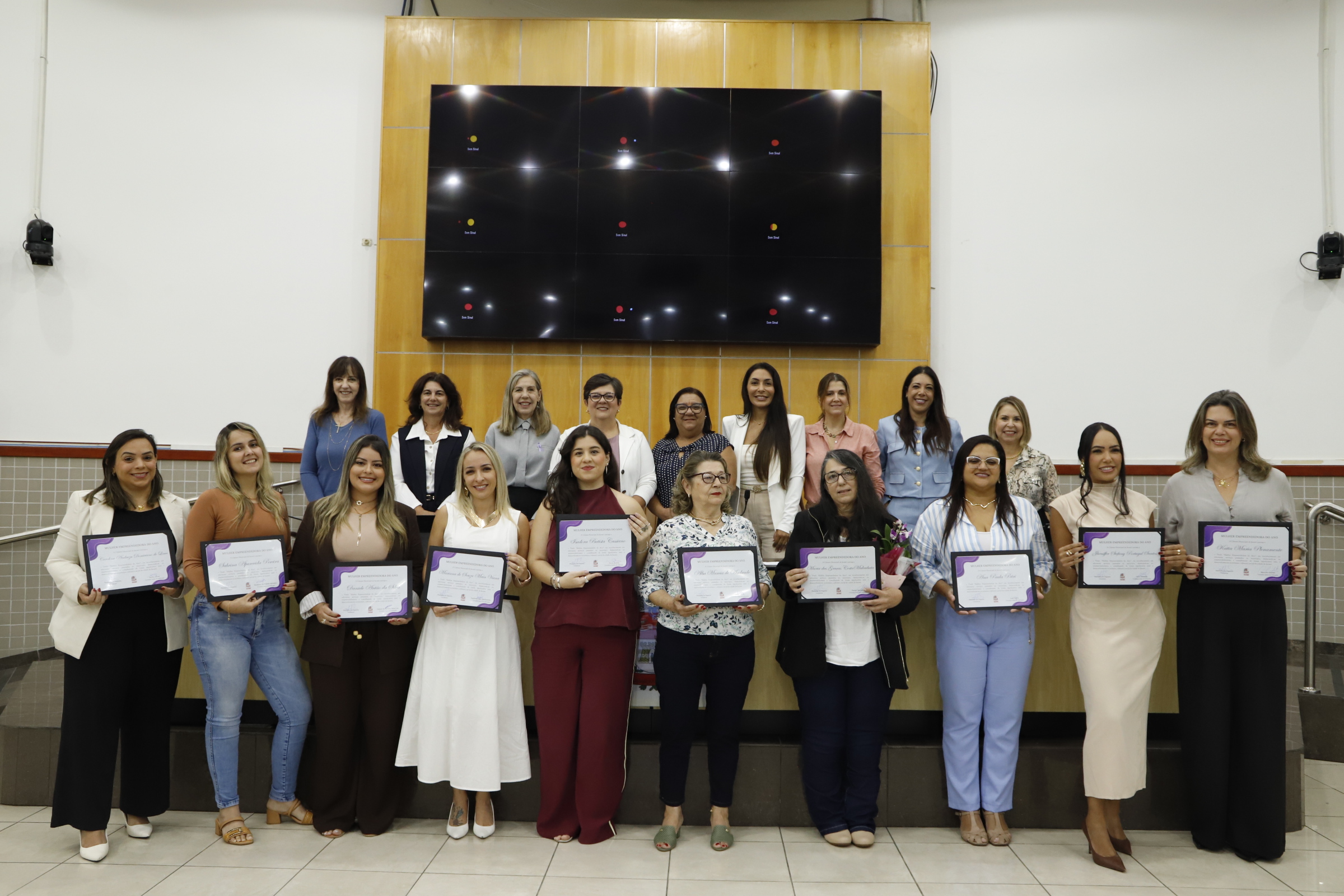Solenidade – Antes da Ordem do Dia, o Cerimonial da Câmara realizou o Ato Solene de outorga do título “Mulher Empreendedora do Ano”, nos termos do Decreto Legislativo nº 502/2025, de autoria do vereador Paulinho dos Condutores (Podemos).