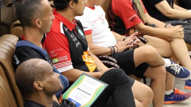 A cerimônia ainda contou com a presença dos vereadores Dudi (PL) – autor do Decreto Legislativo 477/2023 que criou a homenagem e também relator da Comissão de Educação, Cultura e Esportes (CECE) – Maria Amélia (PSDB), presidente da CECE, Roninha (Podemos), Luís Flávio (PT), Paulinho dos Condutores (PL), além dos secretários de Esportes e Recreação, Dorival Leal Moreira, e de Governo e Planejamento, Celso Florêncio de Souza.