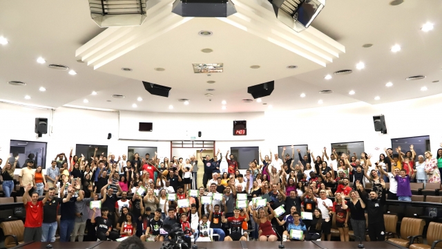 Cerca de 300 pessoas compareceram às galerias da Câmara Municipal na noite de quinta-feira (14) para prestigiar a entrega do prêmio “Jorge Araújo de Destaque Esportivo” a 18 atletas da categoria infanto-juvenil que se destacaram ao longo de 2023 em Jacareí.