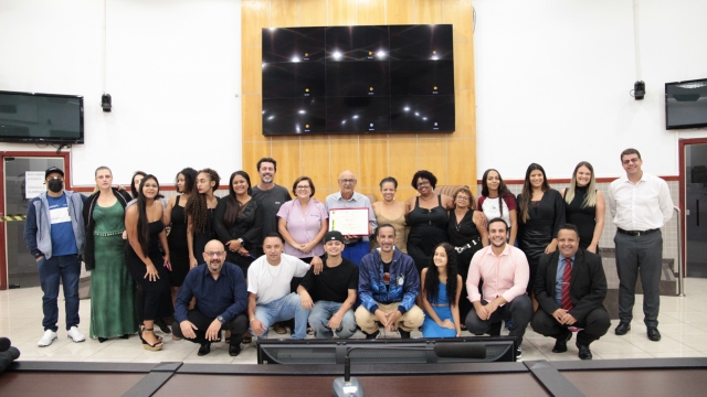 A Câmara Municipal realizou na noite de segunda-feira (8) solenidade para entrega de Título de Cidadania a David Coelho, sambista de 77 anos. O título foi aprovado por meio de decreto legislativo de autoria do vereador Roninha (CIDADANIA), aprovado em agosto de 2023.