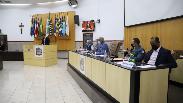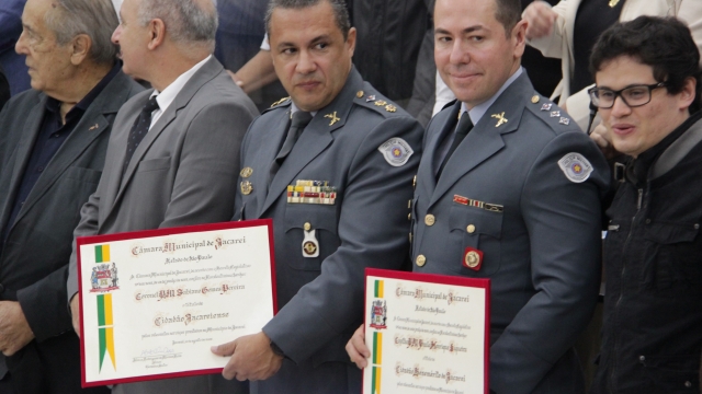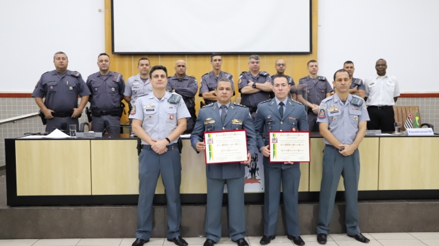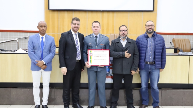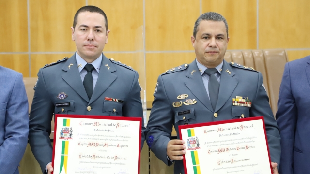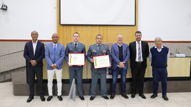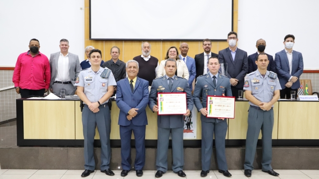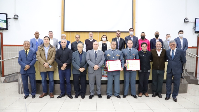 Solenidade – Antes do início da Ordem do Dia, o Cerimonial da Câmara realizou solenidade de outorga de Título de Cidadão Benemérito de Jacareí ao Capitão PM Paulo Henrique Siqueira, e do título de Cidadão Jacareiense ao Tenente-Coronel PM Fabiano Gomes Pereira.