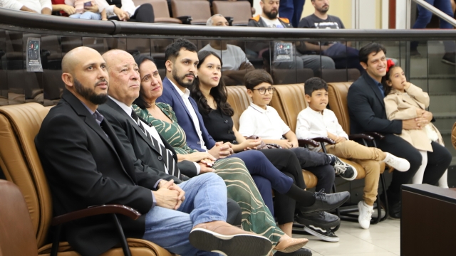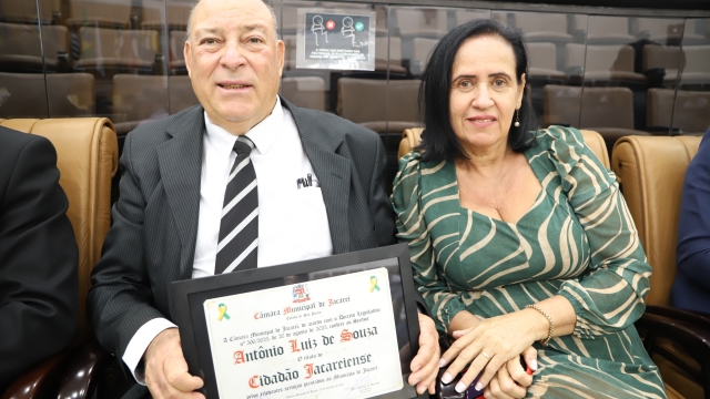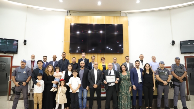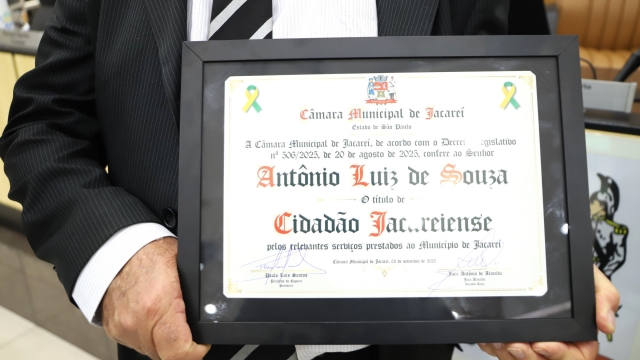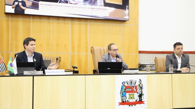 Solenidade – Antes da Ordem do Dia, o Cerimonial da Câmara realizou Ato Solene de outorga do Título de Cidadão Jacareiense ao senhor Luiz Antônio de Souza, nos termos do Decreto Legislativo nº 506/2025, de autoria do vereador Juex Almeida (PP).