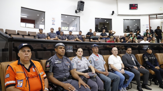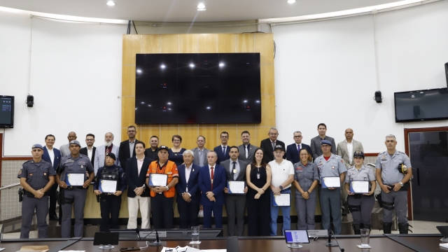 Solenidades – Antes da Ordem do Dia, o Cerimonial da Câmara realizou ato solene conjunto de outorga do “Diploma de Policial Destaque do Ano”, nos termos do Decreto Legislativo n° 302/2010, e de entrega da “Láurea de Mérito Profissional”, em conformidade com o Decreto Legislativo n° 318//2011, de autoria da ex-vereadora Rose Gaspar e do ex-vereador Itamar Alves, respectivamente.
