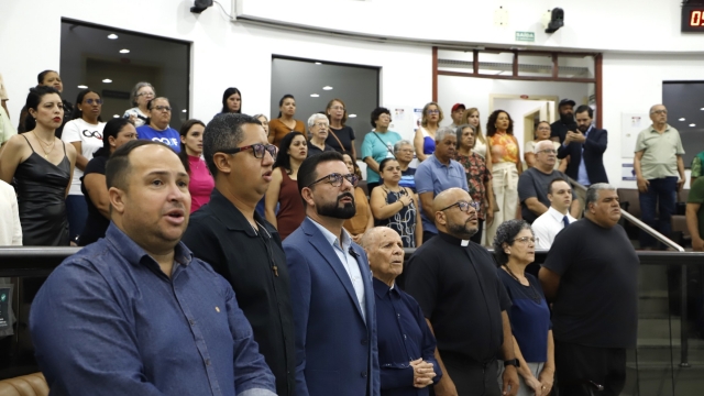 Solenidade – Antes da discussão dos projetos, o Cerimonial da Câmara realizou Ato Solene em “Homenagem ao Líder Religioso”, nos termos do Decreto Legislativo nº 359/2014, de autoria da ex-vereadora Rose Gaspar.