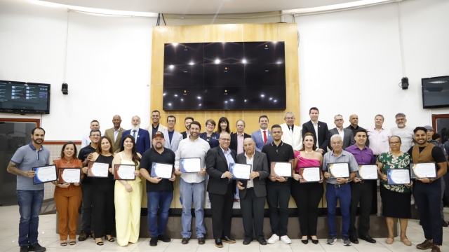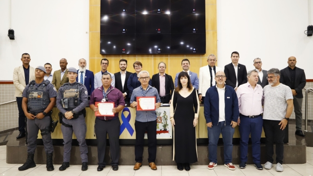 Homenagens – Antes da Ordem do Dia, o Cerimonial da Câmara realizou Ato Solene conjunto de homenagem aos Doadores de Sangue de Jacareí e a entrega do Certificado de Qualidade de Serviços Comerciais “Comércio Nota 10”, conforme decretos legislativos de autoria do ex-vereadores Edinho Guedes e Fernando da Ótica Original, respectivamente.