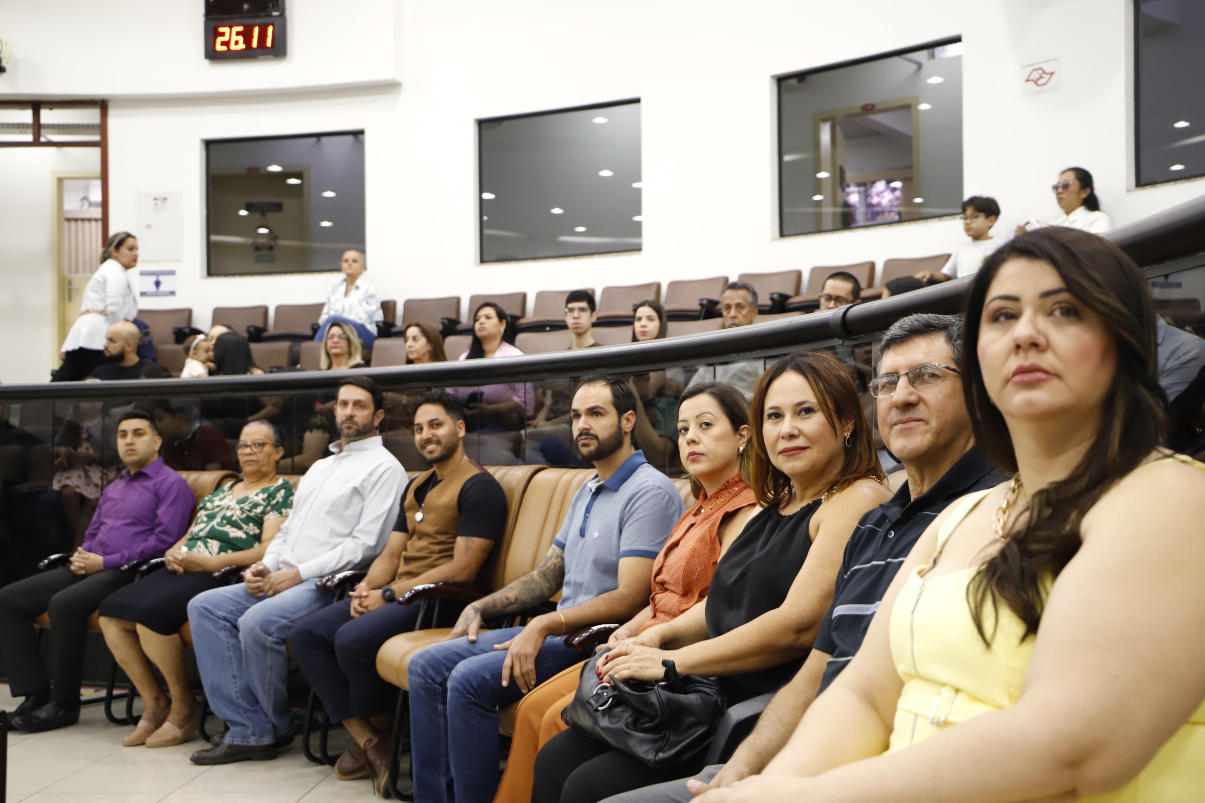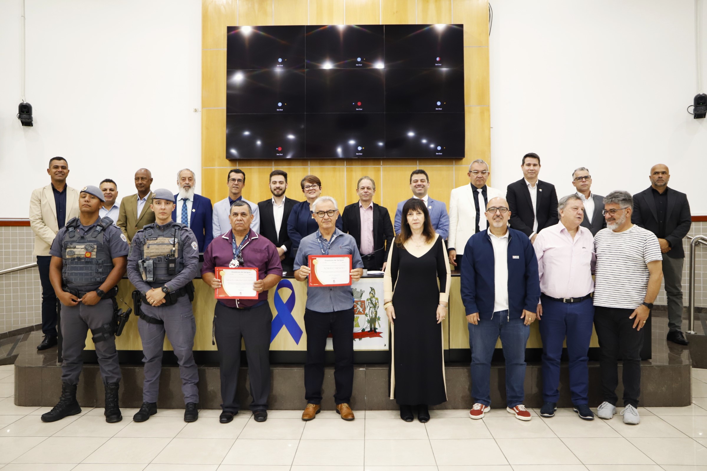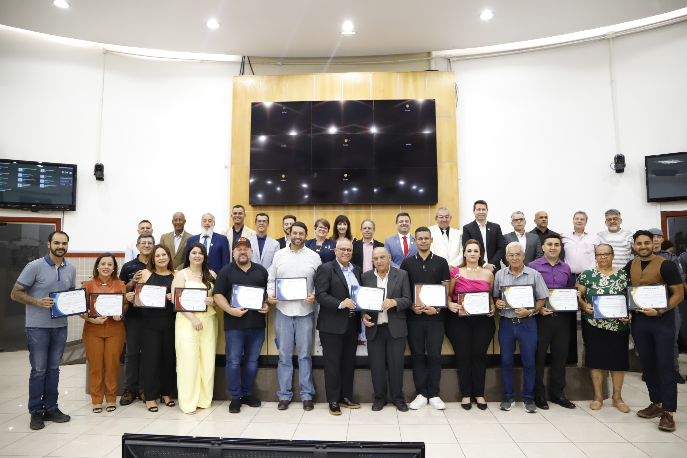 Homenagens – Antes da Ordem do Dia, o Cerimonial da Câmara realizou Ato Solene conjunto de homenagem aos Doadores de Sangue de Jacareí e a entrega do Certificado de Qualidade de Serviços Comerciais “Comércio Nota 10”, conforme decretos legislativos de autoria do ex-vereadores Edinho Guedes e Fernando da Ótica Original, respectivamente.