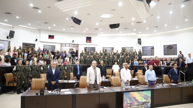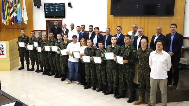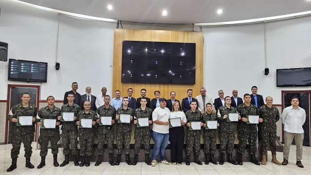 Solenidade – Antes da Ordem do Dia, o Cerimonial da Câmara realizou Ato Solene em Homenagem ao Atirador do Tiro de Guerra, conforme Decreto Legislativo nº 292/2009, de autoria do ex-vereador Diobel de Lima Fernandes.