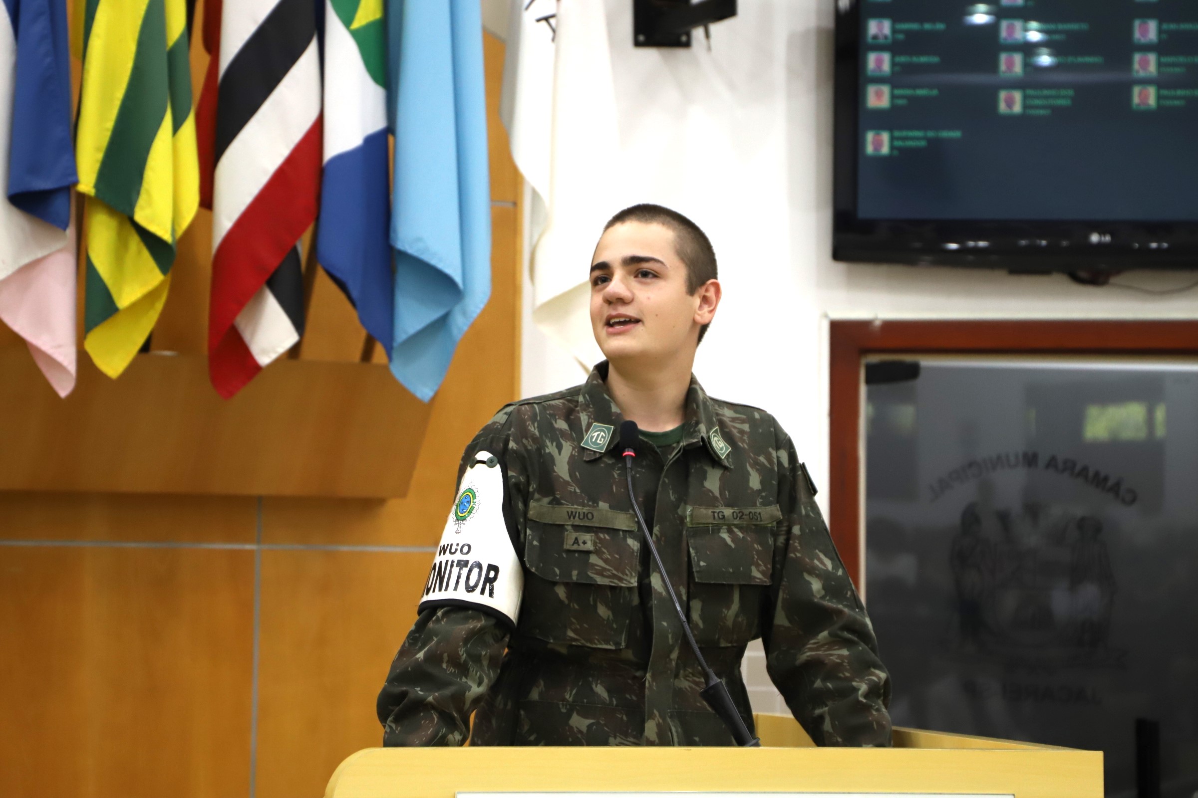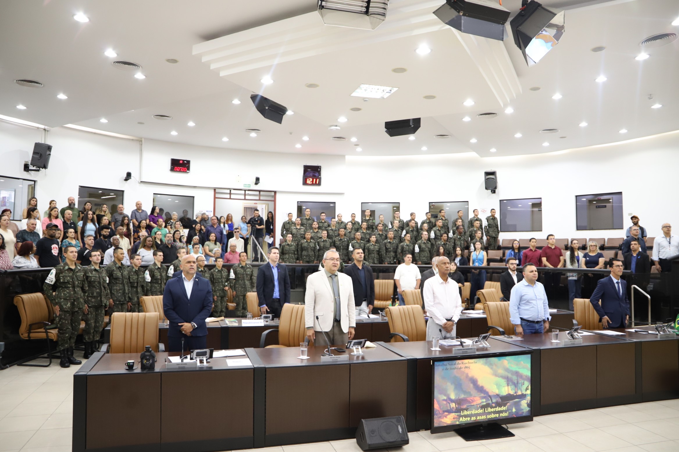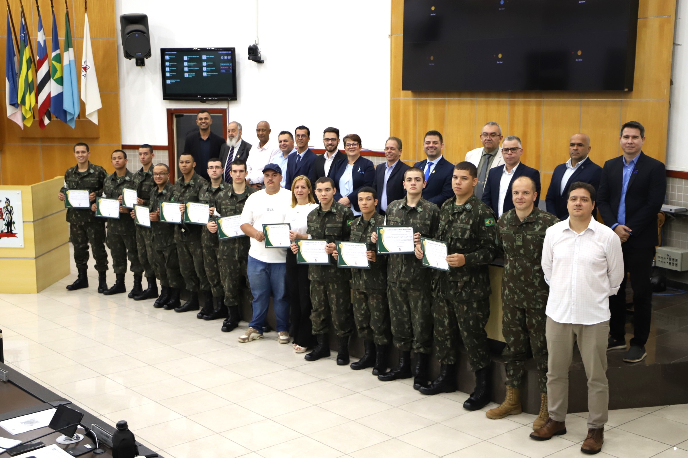 Solenidade – Antes da Ordem do Dia, o Cerimonial da Câmara realizou Ato Solene em Homenagem ao Atirador do Tiro de Guerra, conforme Decreto Legislativo nº 292/2009, de autoria do ex-vereador Diobel de Lima Fernandes.