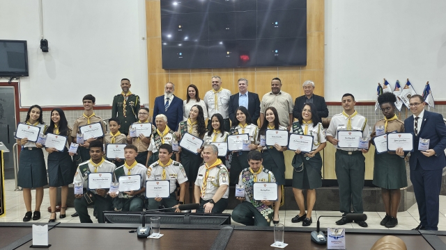 Um grupo de 18 jovens do Clube de Desbravadores Luzeiros do Vale foi homenageado com títulos de diploma de Honra ao Mérito durante sessão solene realizada na noite de quinta-feira (25), no plenário da Câmara Municipal.