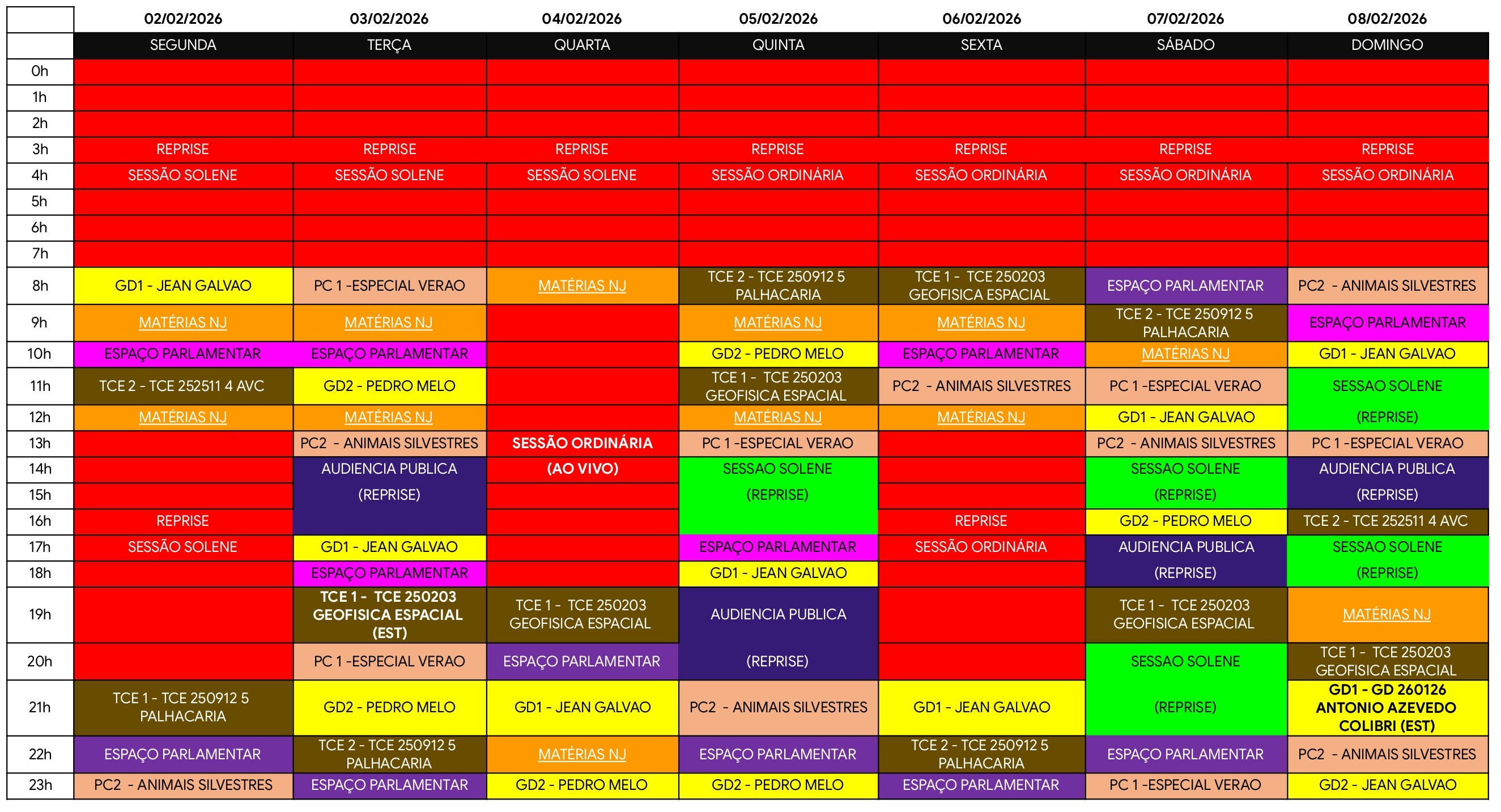 📽️ DIAS E HORÁRIOS DE NOSSOS PROGRAMAS – TV CÂMARA JACAREÍ | 02/02 – 08/02📽️