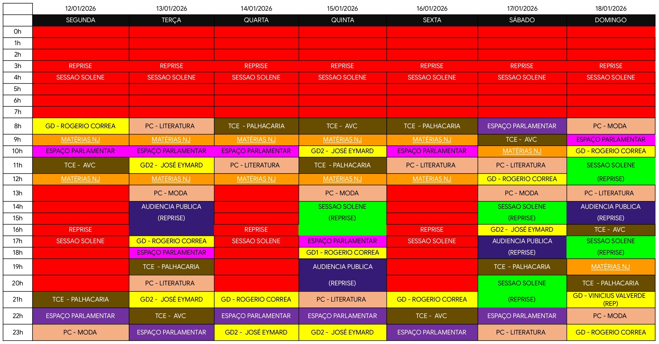 📽️ DIAS E HORÁRIOS DE NOSSOS PROGRAMAS – TV CÂMARA JACAREÍ | 12/01 – 13/01📽️