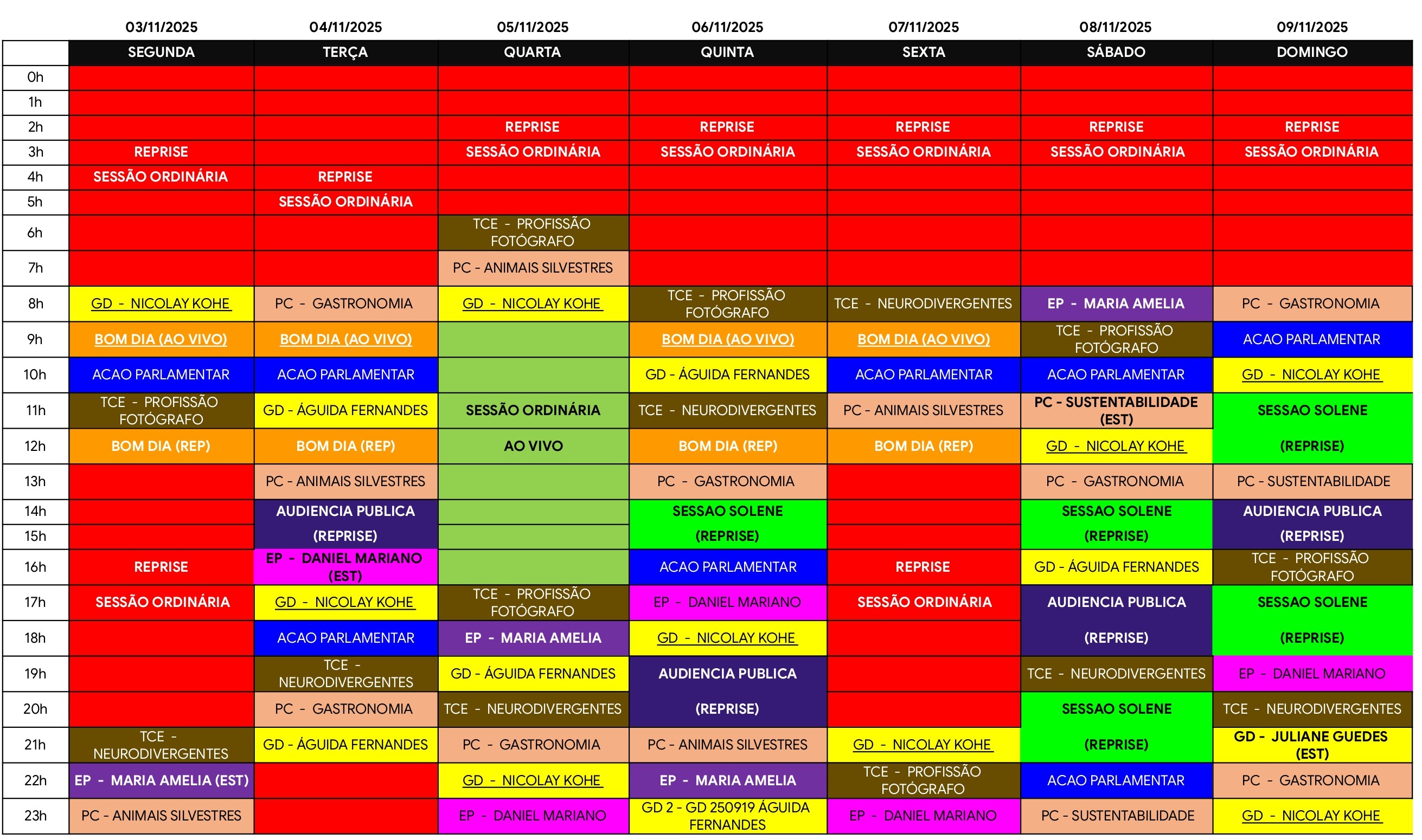📽️ DIAS E HORÁRIOS DE NOSSOS PROGRAMAS – TV CÂMARA JACAREÍ | 03/11 – 09/11 📽️